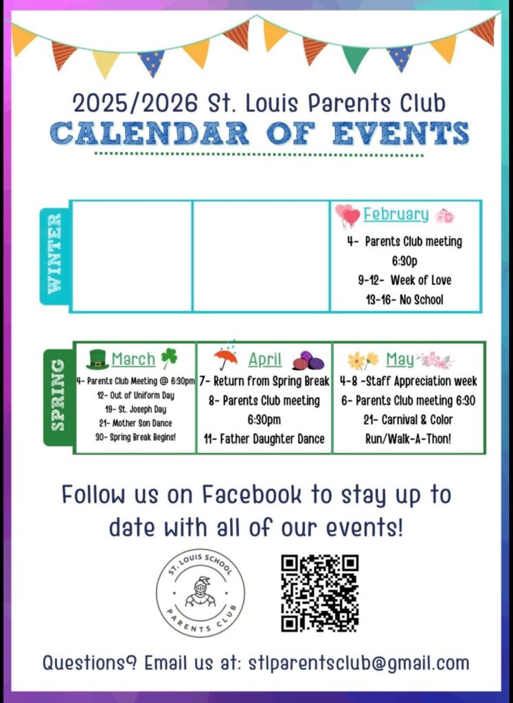 St. Louis Parents’ Club is a service organization created and maintained in cooperation with and in support of, St. Louis School. We exist to: